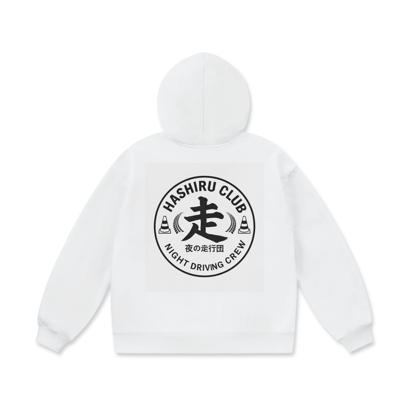 Hashiru Night driving crew white Oversize Heavyweight Fleece Hoodie
